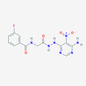 N-(2-(2-(6-amino-5-nitropyrimidin-4-yl)hydrazinyl)-2-oxoethyl)-3-fluorobenzamide
