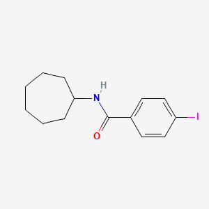 This compound features a cycloheptyl group attached to a 4-iodobenzamide moiety. The iodine atom contributes to the compound's distinct chemical reactivity, while the cycloheptyl group adds steric bulk, influencing its binding affinity to biological targets.