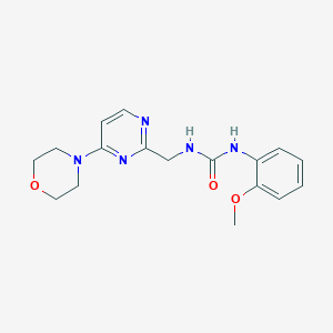 1-(2-Methoxyphenyl)-3-((4-morpholinopyrimidin-2-yl)methyl)urea is a complex organic compound that has garnered attention for its potential biological activities, particularly in medicinal chemistry. This compound features a methoxyphenyl group, a morpholinopyrimidinyl moiety, and a urea linkage, which contribute to its diverse applications in biological research and therapeutic development.