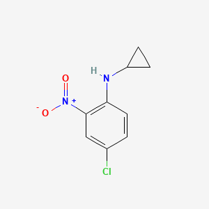 While specific research on the synthesis and reactivity of 4-chloro-N-cyclopropyl-2-nitroaniline is not extensively detailed in the surveyed literature, its chemical behavior can be inferred from the properties of its constituent parts. The presence of the chloro and nitro substituents on the aniline ring, combined with the N-cyclopropyl group, suggests that this molecule could serve as a valuable intermediate in the synthesis of complex heterocyclic compounds and as a probe for studying reaction mechanisms.