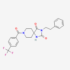 The synthesis of 3-(2-phenylethyl)-8-[4-(trifluoromethyl)benzoyl]-1,3,8-triazaspiro[4.5]decane-2,4-dione typically involves multiple steps, starting with the preparation of key intermediates. . The reaction conditions often require the use of specific catalysts and reagents to achieve high yields and selectivity.