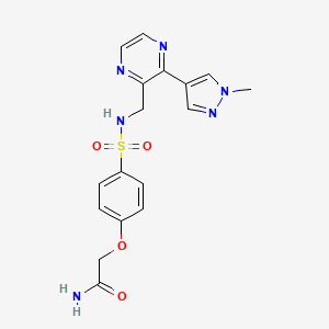 In chemistry, 2-(4-(N-((3-(1-methyl-1H-pyrazol-4-yl)pyrazin-2-yl)methyl)sulfamoyl)phenoxy)acetamide is used as a building block for the synthesis of more complex molecules. Its unique structure allows for the exploration of various chemical reactions and the development of new synthetic methodologies.