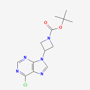 The synthesis of tert-Butyl 3-(6-chloro-9H-purin-9-yl)azetidine-1-carboxylate typically involves multiple steps. One common method includes the reaction of 6-chloropurine with azetidine-1-carboxylic acid tert-butyl ester under specific conditions. The reaction is usually carried out in the presence of a base such as potassium carbonate (K2CO3) and a suitable solvent like dimethylformamide (DMF). The reaction mixture is heated to facilitate the formation of the desired product .