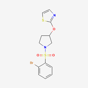 2-{[1-(2-bromobenzenesulfonyl)pyrrolidin-3-yl]oxy}-1,3-thiazole is unique due to its combination of functional groups, which confer specific chemical and biological properties. The presence of the thiazole ring distinguishes it from other pyrrolidine derivatives, while the bromobenzenesulfonyl group provides additional reactivity and binding potential.