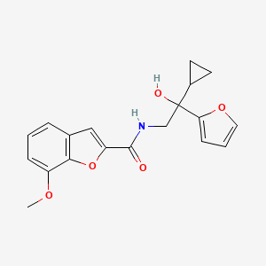 N-[2-cyclopropyl-2-(furan-2-yl)-2-hydroxyethyl]-7-methoxy-1-benzofuran-2-carboxamide is a synthetic benzofuran derivative characterized by a complex structure combining multiple pharmacophores. The molecule features: