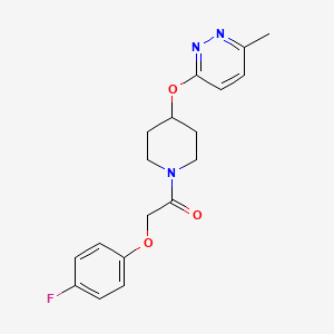 2-(4-Fluorophenoxy)-1-(4-((6-methylpyridazin-3-yl)oxy)piperidin-1-yl)ethanone is a complex organic compound with potential applications in various scientific fields. This compound features a fluorophenoxy group, a piperidinyl group, and a methylpyridazinyl group, making it a molecule of interest for researchers in chemistry, biology, and medicine.