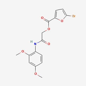 [(2,4-Dimethoxyphenyl)carbamoyl]methyl 5-bromofuran-2-carboxylate is a synthetic organic compound characterized by a 5-bromofuran-2-carboxylate ester core linked to a [(2,4-dimethoxyphenyl)carbamoyl]methyl group. This compound is of interest in pharmaceutical and agrochemical research due to its hybrid structure, combining halogenated heterocyclic and aryl carbamoyl functionalities.