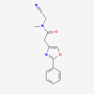 N-(cyanomethyl)-N-methyl-2-(2-phenyl-1,3-oxazol-4-yl)acetamide is unique due to its specific combination of functional groups, which confer distinct chemical and biological properties. The presence of the cyanomethyl group, in particular, differentiates it from other oxazole derivatives, influencing its reactivity and interactions with biological targets.