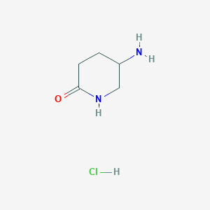The presence of both an amine and a lactam functionality within the same molecule imparts 5-aminopiperidin-2-one hydrochloride with a unique reactivity profile. This dual functionality allows for a variety of chemical transformations, enabling chemists to introduce molecular diversity and construct complex heterocyclic systems. The strategic placement of the amino group at the 5-position offers distinct synthetic advantages compared to its positional isomers, influencing the regioselectivity of subsequent reactions. vulcanchem.com