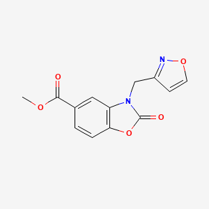 The mechanism of action of methyl 3-(isoxazol-3-ylmethyl)-2-oxo-2,3-dihydro-1,3-benzoxazole-5-carboxylate involves its interaction with specific molecular targets. The isoxazole ring can interact with enzymes or receptors, potentially inhibiting or activating their function . The benzoxazole moiety may also contribute to the compound’s binding affinity and specificity for certain biological targets . These interactions can modulate various biochemical pathways, leading to the compound’s observed effects .