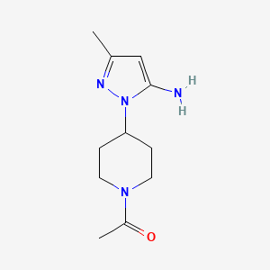 1-[4-(5-Amino-3-methyl-1H-pyrazol-1-yl)piperidin-1-yl]ethan-1-one is a compound that combines a pyrazole ring, a piperidine ring, and an ethanone group. This unique structure contributes to its diverse biological activities, making it a subject of interest in medicinal chemistry.