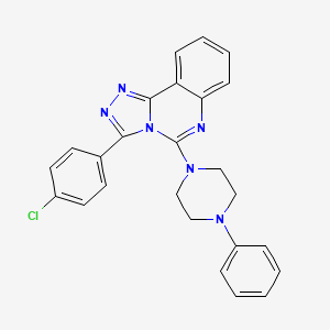 3-(4-Chlorophenyl)-5-(4-phenylpiperazino)[1,2,4]triazolo[4,3-c]quinazoline is a complex heterocyclic compound that has garnered interest in various fields of scientific research due to its unique structural features and potential biological activities. This compound is part of the triazoloquinazoline family, which is known for its diverse pharmacological properties.