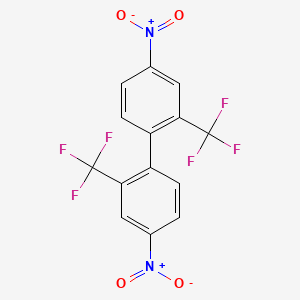 2,2'-Bis(trifluoromethyl)-4,4'-dinitrobiphenyl is a nitro-substituted biphenyl derivative featuring two trifluoromethyl (-CF₃) groups at the 2,2'-positions and nitro (-NO₂) groups at the 4,4'-positions.