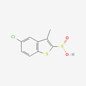 The mechanism of action of 5-Chloro-3-methyl-1-benzothiophene-2-sulfinic acid depends on its specific application. In biological systems, it may interact with enzymes or proteins, inhibiting their activity or altering their function. The sulfinic acid group can form covalent bonds with nucleophilic residues in proteins, leading to changes in protein structure and function.