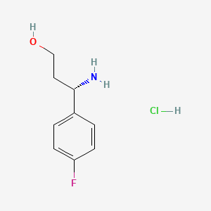 (S)-3-Amino-3-(4-fluoro-phenyl)-propan-1-ol hydrochloride is a chemical compound with potential applications in drug development and biological research. It is a chiral compound with an amino alcohol structure, featuring a propanol backbone with a hydroxyl group, an amino group, and a para-fluorophenyl substituent.