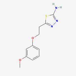 5-[2-(3-Methoxyphenoxy)ethyl]-1,3,4-thiadiazol-2-amine is a 1,3,4-thiadiazole derivative characterized by a 3-methoxyphenoxy ethyl substituent at the 5-position of the thiadiazole core. This compound belongs to a broader class of thiadiazole derivatives known for their diverse biological activities, including antimicrobial, anticancer, and enzyme inhibitory effects .