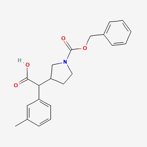 3-Pyrrolidineacetic acid, alpha-(3-methylphenyl)-1-[(phenylmethoxy)carbonyl]- is a complex organic compound with a molecular structure that includes a pyrrolidine ring, an acetic acid moiety, a 3-methylphenyl group, and a phenylmethoxy carbonyl group