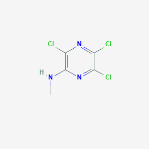 3,5,6-Trichloro-N-methylpyrazin-2-amine is a member of the pyrazine family, a class of heterocyclic aromatic compounds featuring a six-membered ring with two nitrogen atoms at positions 1 and 4. The presence of three chlorine atoms and an N-methylamine group on the pyrazine core significantly influences its chemical properties. Halogenated pyrazines are recognized for their utility as intermediates in the synthesis of pharmaceuticals, particularly those with antibacterial properties sigmaaldrich.com. The electron-withdrawing nature of the halogen atoms enhances the electrophilicity of the pyrazine ring, making it more susceptible to nucleophilic substitution reactions. This characteristic is a cornerstone of its synthetic utility.