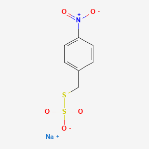 The synthesis of SodiumS-(4-nitrobenzyl)sulfurothioate typically involves the reaction of 4-nitrobenzyl chloride with sodium thiosulfate under controlled conditions. The reaction is carried out in an aqueous medium, and the product is isolated through crystallization or precipitation techniques. The reaction conditions, such as temperature, pH, and reaction time, are optimized to achieve high yield and purity.