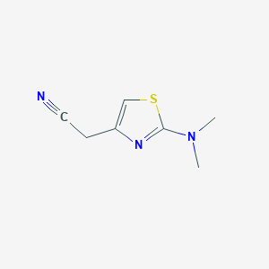 The inherent reactivity of its functional groups makes 2-[2-(dimethylamino)-1,3-thiazol-4-yl]acetonitrile a highly valuable intermediate in the synthesis of intricate organic structures. The presence of the nitrile group allows for a wide range of chemical transformations, including hydrolysis, reduction, and addition reactions, which are fundamental in the elaboration of molecular complexity. The thiazole (B1198619) ring itself can participate in various cycloaddition and cross-coupling reactions, further expanding its synthetic utility.