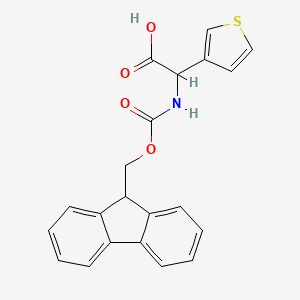 This compound is a specialized chemical building block designed for use in Fmoc-based peptide synthesis. netascientific.com As an unnatural amino acid derivative, its structure combines the key features of the Fmoc protecting group with the unique side chain of L-2-(3-Thienyl)-glycine. The core structure consists of a glycine (B1666218) backbone where one of the α-hydrogens is replaced by a 3-thienyl group—a five-membered aromatic ring containing a sulfur atom. ontosight.ai The "L" designation refers to the specific stereoisomer of the chiral α-carbon. The amino group of this structure is protected by the Fmoc group, rendering it suitable for incorporation into peptide chains via SPPS. netascientific.com