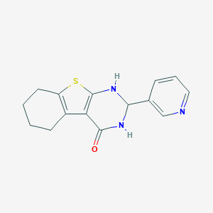 2-(3-pyridinyl)-2,3,5,6,7,8-hexahydro1benzothieno[2,3-d]pyrimidin-4(1H)-one is a heterocyclic compound that has garnered interest due to its potential biological activities. This compound features a unique structure combining pyridine, benzothiophene, and pyrimidine rings, making it a valuable target for synthetic and medicinal chemistry.