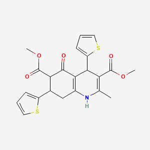 Dimethyl 2-methyl-5-oxo-4,7-di-2-thienyl-1,4,5,6,7,8-hexahydroquinoline-3,6-dicarboxylate is a complex organic compound that belongs to the class of hexahydroquinoline derivatives This compound is characterized by its unique structure, which includes a hexahydroquinoline core substituted with thienyl groups and ester functionalities