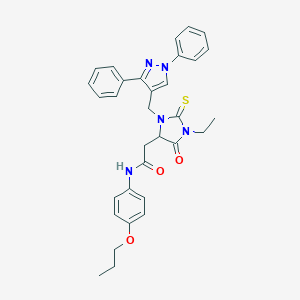 2-{3-[(1,3-diphenyl-1H-pyrazol-4-yl)methyl]-1-ethyl-5-oxo-2-thioxo-4-imidazolidinyl}-N-(4-propoxyphenyl)acetamide