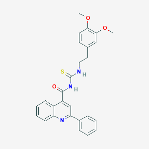 N-(3,4-DIMETHOXYPHENETHYL)-N'-[(2-PHENYL-4-QUINOLYL)CARBONYL]THIOUREA is a complex organic compound with a unique structure that combines a quinoline core with a phenyl and dimethoxyphenyl moiety. This compound is of interest in various fields of scientific research due to its potential biological activities and applications in medicinal chemistry.