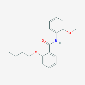 2-Butoxy-N-(2-methoxyphenyl)benzamide is a benzamide derivative featuring a 2-butoxy substituent on the benzamide core and a 2-methoxyphenyl group attached via an amide linkage. Benzamide derivatives are widely studied for their biological activities, including antitumor, antimicrobial, and receptor antagonism properties, influenced by substituent variations .