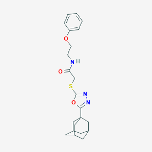 2-[[5-(1-adamantyl)-1,3,4-oxadiazol-2-yl]sulfanyl]-N-(2-phenoxyethyl)acetamide is a complex organic compound that features an adamantyl group, an oxadiazole ring, and a phenoxyethyl group