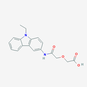 The synthesis of {2-[(9-ethyl-9H-carbazol-3-yl)amino]-2-oxoethoxy}acetic acid typically involves multiple steps, starting from the carbazole derivative. One common method involves the reaction of 3-amino-9-ethylcarbazole with ethyl chloroacetate under basic conditions to form the intermediate ester. This intermediate is then hydrolyzed to yield the final product .