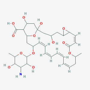 C[C@@H]1C/C=C/C=C/C=C/C=C/[C@@H](C[C@H]2[C@@H]([C@H](C[C@](O2)(C[C@H](C[C@@H]3[C@H](O3)/C=C/C(=O)O1)O)O)O)C(=O)O)OC4[C@H]([C@H]([C@@H]([C@H](O4)C)O)N)O |