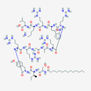 CCCCCCCCCCCCCC(=O)N[C@@H](CO)C(=O)N[C@@H]([C@@H](C)CC)C(=O)N[C@@H](CC1=CC=C(C=C1)O)C(=O)N[C@@H](CCCNC(=N)N)C(=O)N[C@@H](CCCNC(=N)N)C(=O)NCC(=O)N[C@@H](C)C(=O)N[C@@H](CCCNC(=N)N)C(=O)N[C@@H](CCCNC(=N)N)C(=O)N[C@@H](CC2=CNC3=CC=CC=C32)C(=O)N[C@@H](CCCNC(=N)N)C(=O)N[C@@H](CCCCN)C(=O)N[C@@H](CC(C)C)C(=O)O | |