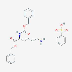 Nα-Z-L-lysine benzyl ester benzenesulfonate salt is a derivative of the amino acid L-lysine, featuring a benzyloxycarbonyl (Z or Cbz) protecting group on the alpha-amino group (Nα), a benzyl ester protecting the carboxylic acid functionality, and a benzenesulfonate counterion.[1] This combination of protecting groups and a salt form enhances the compound's stability, solubility, and utility as an intermediate in the synthesis of complex peptides and other pharmaceutical agents.[2] The presence of the Z-group and the benzyl ester allows for selective deprotection strategies, which are fundamental in modern peptide chemistry.