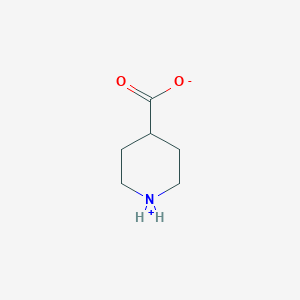 This compound, also known as piperidine-4-carboxylic acid, is a saturated heterocyclic compound.[1] Its structure features a piperidine (B6355638) ring with a carboxylic acid substituent at the 4-position, making it a conformationally constrained analog of the neurotransmitter γ-aminobutyric acid (GABA).[2] This structural feature is key to its biological activity.