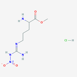 H-D-Arg(NO2)-OMe HCl, also known as N'-Nitro-D-arginine methyl ester hydrochloride, is a derivative of the amino acid arginine. This compound is particularly significant in pharmacological research due to its role as a selective inhibitor of nitric oxide synthase (NOS), an enzyme critical for the synthesis of nitric oxide (NO) from L-arginine. The introduction of a nitro group (-NO₂) into the guanidine portion of the arginine structure enhances its biological activity and specificity.