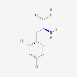 2,4-Dichloro-L-phenylalanine is a halogenated derivative of the natural amino acid L-phenylalanine, featuring chlorine substituents at the 2- and 4-positions of the aromatic ring. Its molecular formula is C₉H₉Cl₂NO₂, with a molecular weight of 234.08 g/mol (CAS: 111119-36-9) . The compound is widely utilized as a building block in peptide synthesis, particularly in pharmaceutical and biochemical research, owing to its ability to introduce hydrophobic and electron-withdrawing groups into peptide chains .