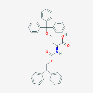 Fmoc-O-trityl-L-homoserine is a versatile amino acid derivative widely utilized in the synthesis of peptides.[1] The fluorenylmethyloxycarbonyl (Fmoc) group provides a base-labile protecting group for the α-amine, while the trityl (Trt) group offers acid-labile protection for the hydroxyl side chain. This orthogonal protection scheme is fundamental to modern Fmoc-based solid-phase peptide synthesis. The trityl group also enhances the solubility of the amino acid derivative.[1][2]