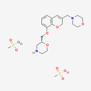 InChI=1S/C19H26N2O4.2CH4O3S/c1-2-16-10-15(12-21-5-8-22-9-6-21)13-25-19(16)18(3-1)24-14-17-11-20-4-7-23-17;2*1-5(2,3)4/h1-3,10,17,20H,4-9,11-14H2;2*1H3,(H,2,3,4)/t17-;;/m1../s1 | |