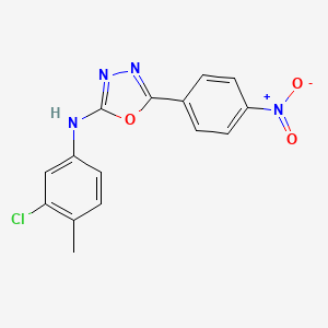This compound, systematically named N-(3-Chloro-4-methylphenyl)-5-(4-nitrophenyl)-1,3,4-oxadiazol-2-amine, is a synthetic compound with the chemical formula C₁₅H₁₁ClN₄O₃.[1] It possesses a molecular weight of 330.72 g/mol .[1]