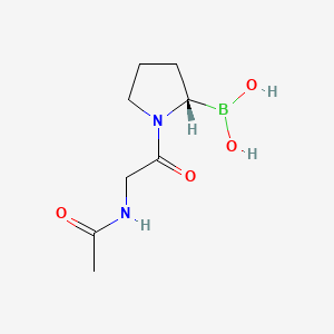 This compound, or N-acetyl-Gly-prolineboronic acid, is a dipeptide analog designed to specifically target the active site of FAP. The inhibitory mechanism relies on the boronic acid moiety, which is a key feature of this compound. The boron atom acts as an electrophile that forms a stable, covalent bond with the catalytic serine residue (Ser624) in the active site of FAP. This interaction effectively and rapidly blocks the enzyme's proteolytic activity. The N-terminal acetyl group (Ac) on the glycine residue is crucial for its selectivity, as it prevents cyclization and enhances its specificity for FAP over other dipeptidyl peptidases.