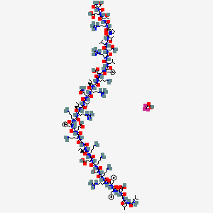 CC[C@H](C)[C@@H](C(=O)NCC(=O)N[C@@H](CCCCN)C(=O)N[C@@H](CCC(=O)O)C(=O)N[C@@H](CC1=CC=CC=C1)C(=O)N[C@@H](CCCCN)C(=O)N[C@@H](CCCNC(=N)N)C(=O)N[C@@H]([C@@H](C)CC)C(=O)N[C@@H](C(C)C)C(=O)N[C@@H](CCC(=O)N)C(=O)N[C@@H](CCCNC(=N)N)C(=O)N[C@@H]([C@@H](C)CC)C(=O)N[C@@H](CCCCN)C(=O)N[C@@H](CC(=O)O)C(=O)N[C@@H](CC2=CC=CC=C2)C(=O)N[C@@H](CC(C)C)C(=O)N[C@@H](CCCNC(=N)N)C(=O)N[C@@H](CC(=O)N)C(=O)N[C@@H](CC(C)C)C(=O)N[C@@H](C(C)C)C(=O)N3CCC[C@H]3C(=O)N[C@@H](CCCNC(=N)N)C(=O)N[C@@H]([C@@H](C)O)C(=O)N[C@@H](CCC(=O)O)C(=O)N[C@@H](CO)C(=O)N)NC(=O)[C@H](CCCCN)NC(=O)[C@H](CCC(=O)O)NC(=O)[C@H](CCCCN)NC(=O)[C@H](CO)NC(=O)[C@H](CCCCN)NC(=O)[C@H](CCCNC(=N)N)NC(=O)[C@H](CC4=CC=CC=C4)NC(=O)[C@H](CC5=CC=CC=C5)NC(=O)[C@H](CC(=O)O)NC(=O)CNC(=O)[C@H](CC(C)C)NC(=O)[C@H](CC(C)C)N.C(=O)(C(F)(F)F)O | |