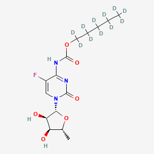 Capecitabine is a fluoropyrimidine carbamate prodrug that is converted in the body to its active metabolite, 5-fluorouracil (5-FU), a potent antineoplastic agent.[4][5][6] this compound is structurally identical to Capecitabine, with the exception of the eleven hydrogen atoms on the pentyl group of the N-(pentyloxy)carbonyl moiety, which are replaced by deuterium atoms.[1][7] This isotopic substitution is key to its function as an internal standard.