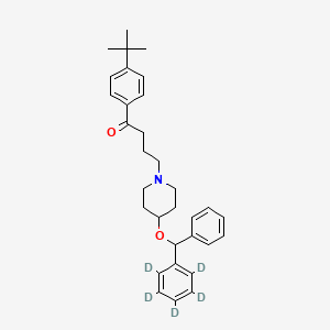 This compound is a stable isotope-labeled version of Ebastine, where five hydrogen atoms on one of the phenyl rings of the diphenylmethoxy group have been replaced with deuterium atoms. This isotopic substitution results in a molecule with a higher molecular weight than its non-deuterated counterpart, which is essential for its use in mass spectrometry-based analytical methods.