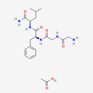 Des-tyr1-leucine enkephalinamide acetate salt exerts its effects by binding to opioid receptors in the nervous system. These receptors are part of the G-protein-coupled receptor family and are involved in pain modulation. Upon binding, the peptide activates intracellular signaling pathways, leading to the inhibition of pain signals and other physiological responses. The interaction with lipid membranes also plays a role in its mechanism of action .