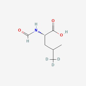 N-Formyl-L-leucine-d3 is a deuterated analog of N-Formyl-L-leucine, a derivative of the essential amino acid L-leucine. The incorporation of three deuterium (B1214612) atoms provides a stable, non-radioactive isotopic label, rendering it a valuable tool in analytical and research settings. This guide provides a comprehensive overview of this compound, including its physicochemical properties, synthesis, and applications, with a focus on its use as an internal standard in mass spectrometry and as a potential tracer in metabolic studies. Detailed methodologies for relevant experimental procedures are provided, alongside a discussion of its potential role in the context of N-formylated peptide signaling pathways.