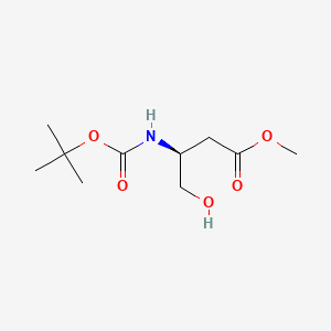 Methyl (S)-3-(Boc-amino)-4-hydroxybutanoate is a chiral ester derivative featuring a tert-butoxycarbonyl (Boc)-protected amine at the 3-position, a hydroxyl group at the 4-position, and a methyl ester at the carboxyl terminus. This compound serves as a critical intermediate in peptide synthesis and pharmaceutical chemistry, particularly for introducing β-amino alcohol motifs or hydroxy-substituted side chains into target molecules . The Boc group enhances stability during synthetic procedures, while the hydroxyl group enables hydrogen bonding and functionalization opportunities.