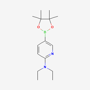 The synthesis of N,N-diethyl-5-(4,4,5,5-tetramethyl-1,3,2-dioxaborolan-2-yl)pyridin-2-amine typically involves the borylation of a pyridine derivative. One common method is the palladium-catalyzed borylation of a halogenated pyridine with bis(pinacolato)diboron under inert conditions. The reaction is usually carried out in the presence of a base such as potassium carbonate and a ligand like triphenylphosphine .