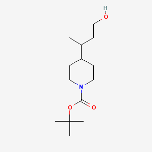 1-Boc-4-(4-hydroxy-2-butyl)piperidine is a piperidine derivative that has garnered attention in the field of medicinal chemistry due to its potential biological activities. This compound is characterized by its unique structural features, which may contribute to its pharmacological properties. This article explores the biological activity of this compound, including its mechanisms of action, therapeutic applications, and relevant research findings.